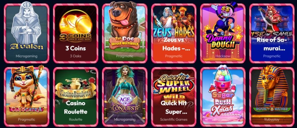 Il catalogo spazia dalle slot tematiche moderne a tutti i classici del casinò come blackjack, roulette e baccarat. Inoltre sono presenti sale live con veri croupier e giochi ispirati ai quiz televisivi. I fornitori includono software house prestigiose che assicurano alte percentuali di RTP e gameplay innovativo.